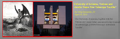 The Large Binocular Telescope Near-infrared Utility with Camera and Integral Field Unit for Extragalactic Research located on Mt Graham in Southeast Arizona keeps an eye on all this. Notice the acronym derived from the letters in boldface – Lucifer - Coincidence? I don’t think so; I believe the Lucifer telescope is owned by the Vatican.