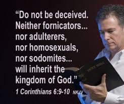 While the Bible clearly prohibits the practice of homosexuality, it does not single it out but the Apostle Paul, in 1 Corinthians 6: 9-11, lists homosexuality along with adultery, theft, drunkeness, greed, and slander as sins that would keep us out of the Kingdom of God.(NIV)